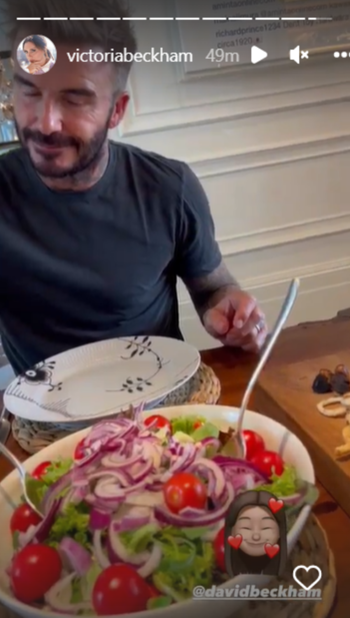 En esta ocasión, Victoria se encargo de presumir en sus historias una sorpresa que le dio su esposo al regresar de una larga jornada de trabajo. Se trató de una cena especial en la que Beckham, quien es considerado como uno de los máximos galanes, demostró que tiene talento en el arte culinario.