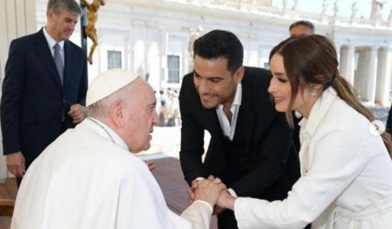 Hace unos días trascendió el rumor de que la conductora se habría casado en Europa con el intérprete de Simba en El rey León, esto luego de que circularan fotos en redes sociales donde se les veía con el Papa Francisco en El Vaticano y luciendo anillos de boda.