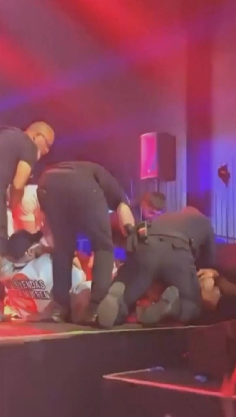 Sin la menor intención de dejar al intérprete de China, su fan trenza sus pies con los del cantante, pero al final logran quitárselo. Todo esto quedó grabado en un videoclip que circula en redes sociales en el cual se puede ver cómo regresan al fan del otro lado de la protección.