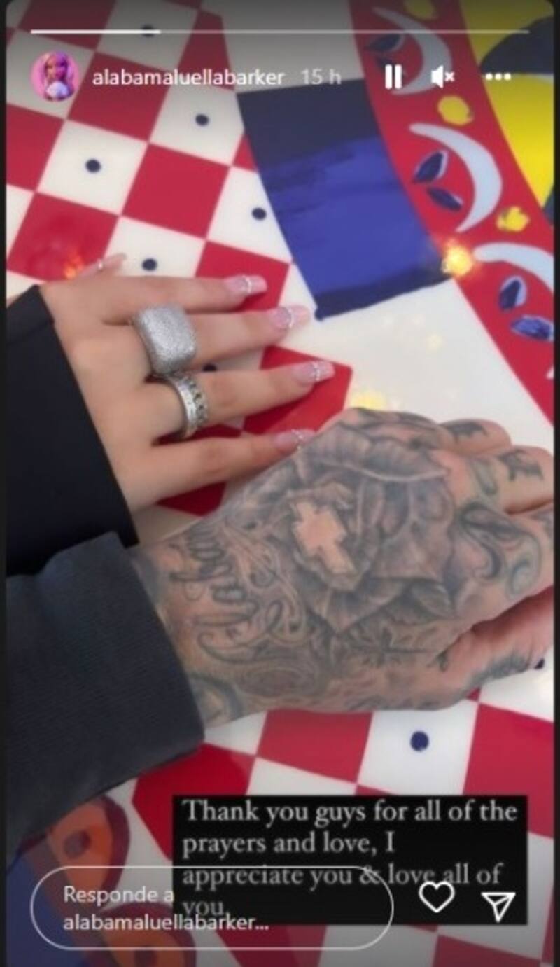 En la reciente foto que publicó mostró la mano de Travis al lado de la de ella; a simple vista salen a relucir sus característicos tatuajes. "Gracias chicos por todo el amor y las oraciones, los aprecio mucho, los amo", mencionó su hija en este posteo que subió a su historia de Instagram.