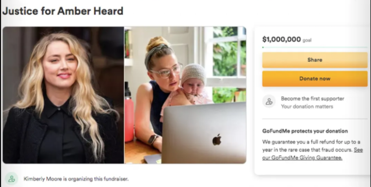 Según la mujer ya se había puesto en contacto con los abogados de la actriz y prometió que Amber tendría acceso a los fondos en todo momento: "Creo que Amber y las redes sociales protegieron al abusador. El juicio excede su patrimonio neto. Es muy triste que él haya podido salirse con la suya con el abuso. El juicio fomenta ese abuso. Si puede, ayúdela", refiere la descripción.
