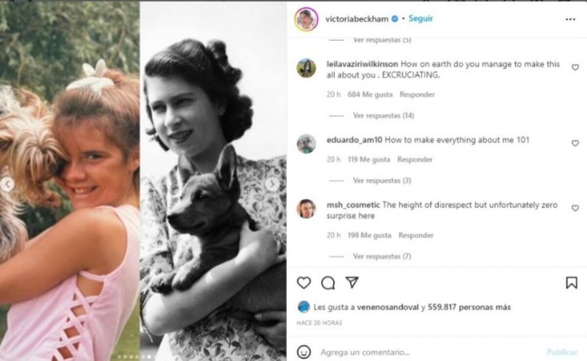 Victoria no quiso quedarse atrás en la celebración y las felicitaciones, por lo que le realizó un “homenaje” a través de unas fotografías en las que se comparaba con la soberana, acción que sus seguidores no tomaron bien, la mayoría mencionó que era “inapropiado y narcisista”.