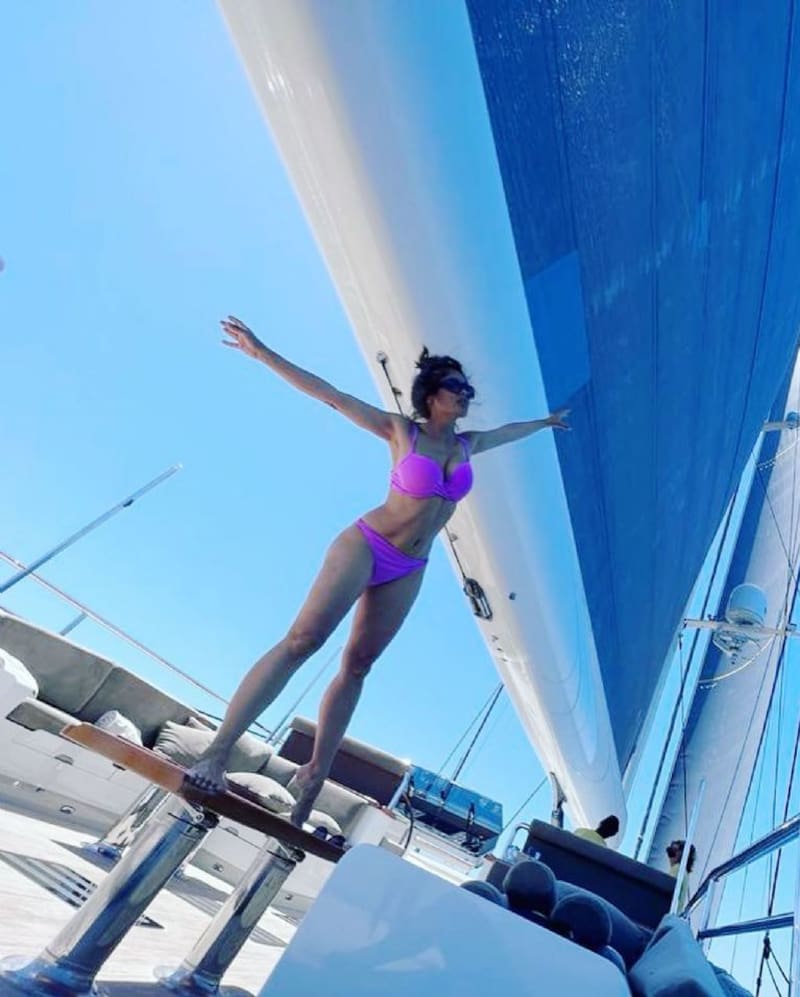 En un nuevo posteo, la actriz mexicana subió varias instantáneas a bordo de un yate enfundada en un traje de baño de dos piezas en color lila que dejó boquiabierto a más de uno ya que no necesitó de poses muy elaboradas para desbordar sensualidad. En las imágenes también se ve a su esposo, el empresario François-Henri Pinault.