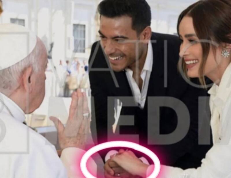 Este jueves surgieron unas fotos en donde se ve a la pareja haciendo una visita muy especial, nada más y nada menos que al papa Francisco en el Vaticano y además de la emoción que se notaba en ambos artistas, hubo un detalle que notaron sus fans que podría afirmar que ya se casaron.