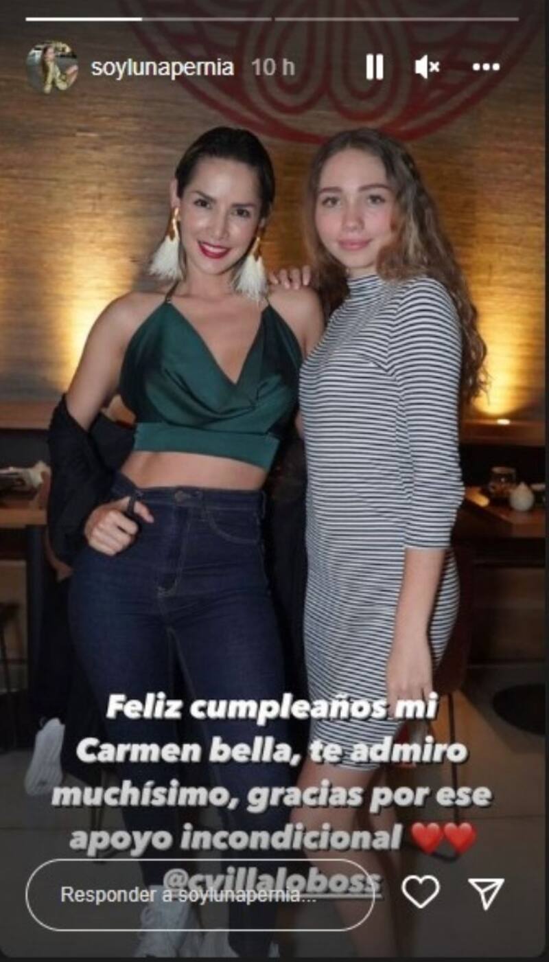 Quien también se dio el tiempo para celebrar la vida de Carmen, fue Luna, hija de Gregorio, pues a través de sus stories le dedicó un mensaje que acompañó con una fotografía juntas.