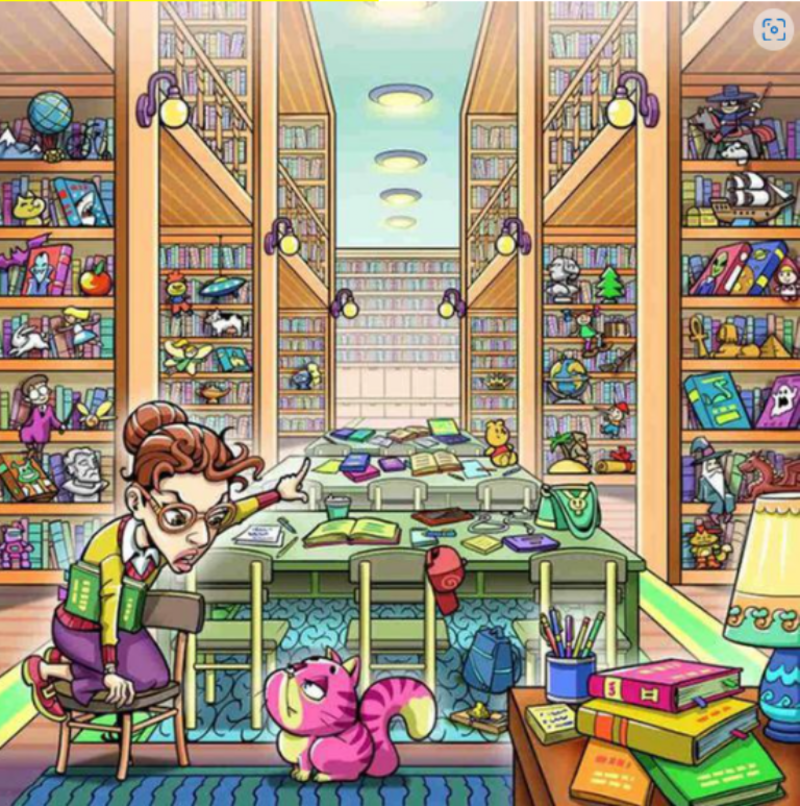 Un pequeño ratón se ha escondido y encontró el sitio perfecto para pasar desapercibido. Poco antes de que se ocultara, la maestra se percató de su presencia y corrió en busca de un gato para localizar pronto al roedor, ¿Será que tú logras verlo antes?