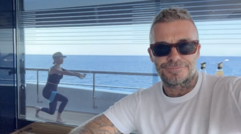 En el video que el ex seleccionado inglés compartió en redes se aprecia que ambos están a bordo de una embarcación, él tomando una taza de café con el mar de fondo, cuando de pronto aparece Victoria Beckham haciendo unos desplantes con una liga de resistencia, sin darse cuenta que está siendo grabada por su esposo.