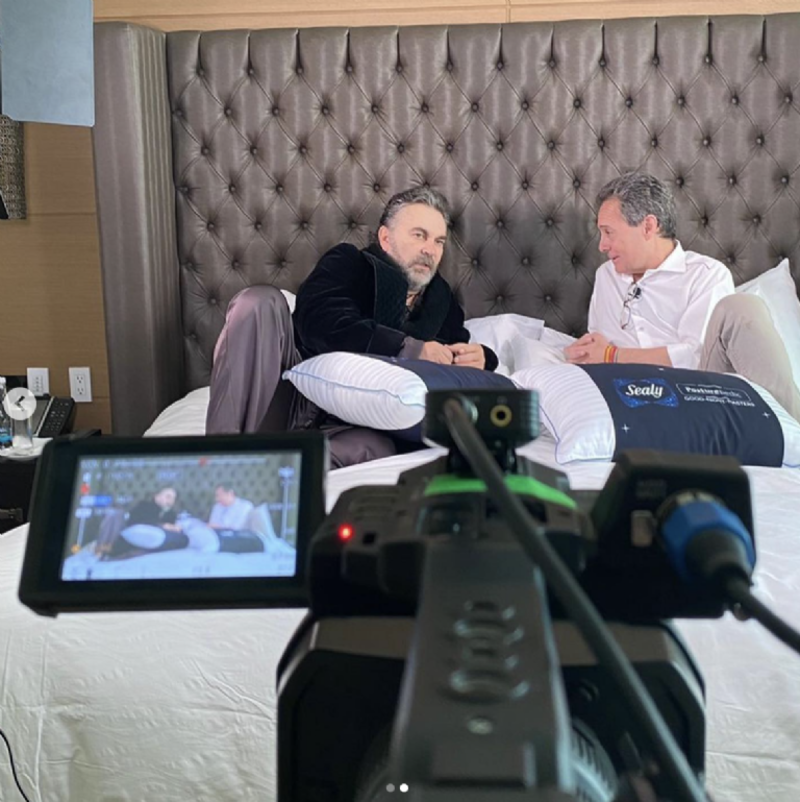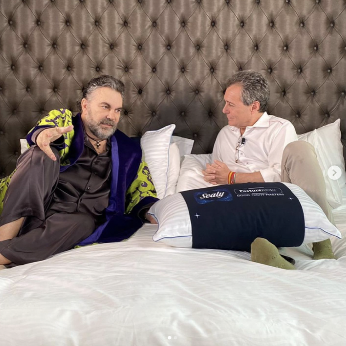Tanto el periodista como el cantante compartieron en sus redes sociales una fotografía en las que se les ve a ambos en la cama conversando de distintos temas, que seguro interesarán a todos los fans del intérprete de Soldado del amor.
