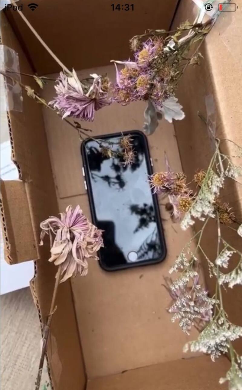 Con todos los accesorios puestos sólo queda abrir la cámara y revisar que en la foto se vean las flores sobresaliendo de la caja, de esta forma se pueden observar los espacios y rellenarlos con más flores o arreglarlas al gusto de cada quien. ¡Y listo, ya podrás tomarte fotos creativas desde casa!