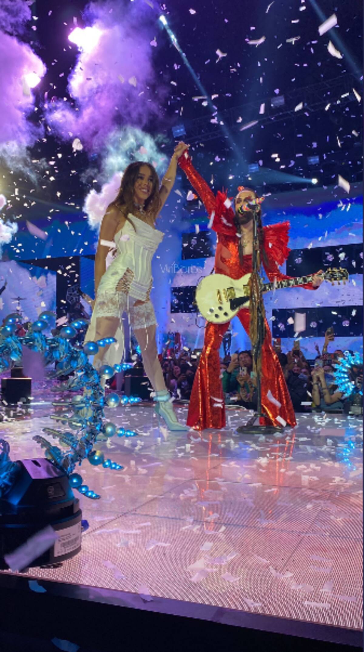 En esta noche que estuvo llena de extravagancia también se dieron cita famosos como Natael Cano, Esmeralda Soto, Paco de Miguel, el cantante urbano Manuel Turizo, entre otros más que causaron la ovación del público tanto por su talento, como por sus creativos looks con los que llenaron de color la premiación de los MTV Miaw 2022.