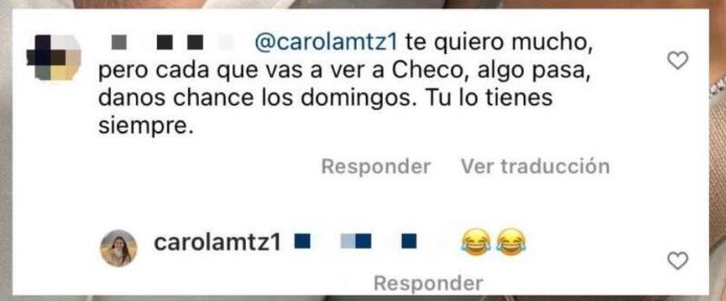 A pesar de lo malos comentarios Carola decidió responder a uno en el que le mencionaron que les prestara al mexicano el día de la carrera porque “ella lo tenía siempre”, y aunque solo contestó con emojis de risa, los fanáticos pensaron que no le molestaban este tipo de mensajes. Algunos internautas han sembrado la posibilidad de una crisis matrimonial, razón por la que borró sus fotos aunque en diferentes ocasiones han declarado que todo está bien entre ellos.
