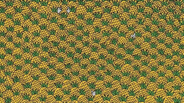 En esta ocasión te presentamos un desafío visual de nivel medio. Se trata de localizar los cuatro elotes que están camuflados entre las decenas de piñas. Debido a la similitud de las formas y del color este reto puede ser complicado para algunas personas, sobre todo cuando se tiene un tiempo establecido para resolver el acertijo. Prepara el cronómetro pues tienes tan solo 10 segundo para lograrlo.