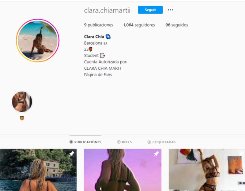 Por otra parte, uno de los perfiles de Instagram contiene el retrato hablado que en primera instancia comenzó a circular sobre Marti, además de la fotografía que parece ser tomada en Kosmos, cuya empresa es propiedad de Piqué, las demás fotografías son en bikini, una haciendo una pose de yoga y un close up de sus ojos, dejando ver que son verdes.