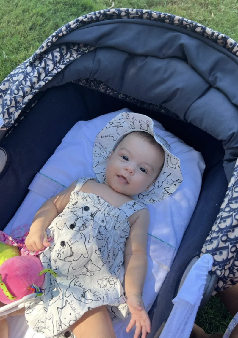 En el posteo, al que solo añadió un emoji de corazón flechado, también se ve la más pequeña de la familia, Bella Esmeralda (4 meses) que está recostada sobre una carreola. La última de las instantáneas es una foto de una charola de carnes frías.
