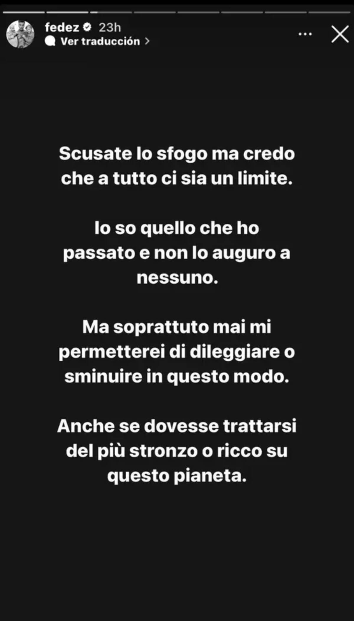 "No me he curado en tres días, pero a veces no hay cura para la estupidez humana. Sé por lo que he pasado y no se lo deseo a nadie. Nunca permitiría que me menospreciaran de esa manera, incluso si fuera la persona más imbécil y más rica de este planeta", mencionó el esposo de Chiara Ferragni, molesto por lo que estaba sucediendo, y agregó lo mal que la ha pasado en los últimos meses.