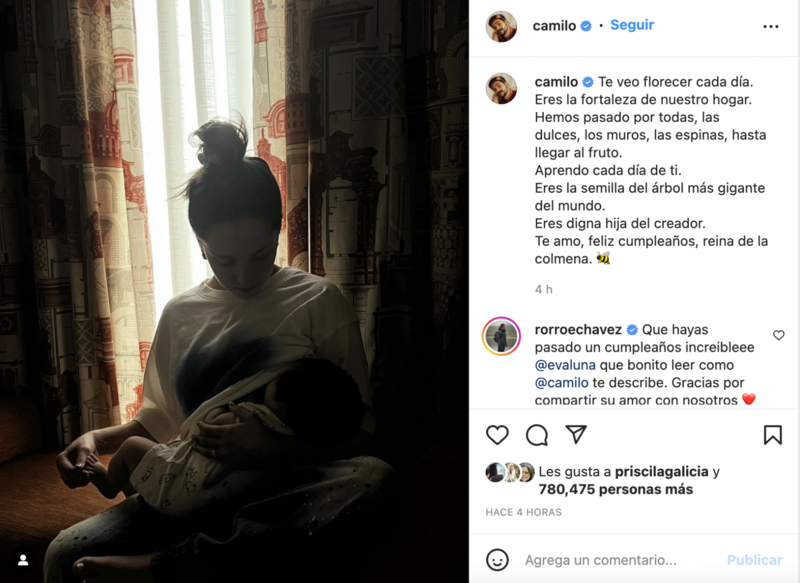 Esta es una de las fotografías más íntimas que el colombiano comparte con sus seguidores de su esposa e hija juntas. Pocos días después del nacimiento de Índigo, en abril pasado, el cantante también publicó una serie de imágenes en las que se pudo observar el arduo trabajo de parto que tuvo Evaluna para dar a luz a su primera hija y en una más mostró los pies de la recién nacida.