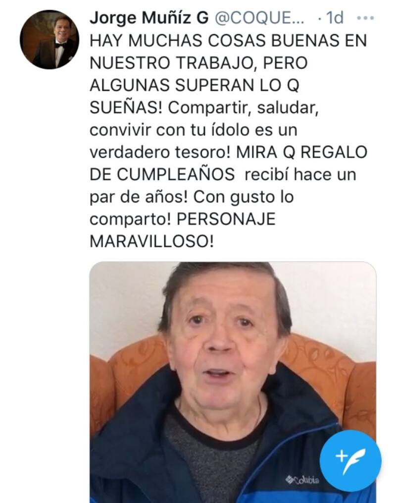 “Hay muchas cosas buenas en nuestro trabajo, pero algunas superan lo que sueñas”, escribió "Coque" en Twitter respecto al videode felicitación. “Compartir, saludar, convivir con tu ídolo es un verdadero tesoro. Mira qué regaló recibí hace un par de años”, mencionó recalcando que “con mucho gusto compartía esto”.