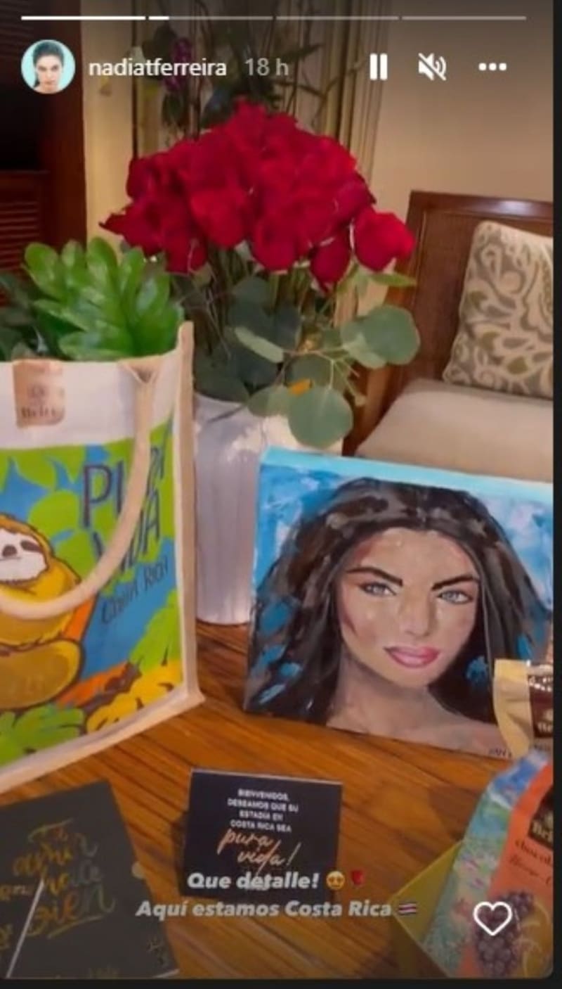 En un pequeño clip se ve su habitación de hotel y en una mesa los obsequios que le dejaron como recibimiento, en los cuales se puede ver diversos objetos como una bolsa, flores, y café de la región, pero lo que más llamó la atención es un retrato.