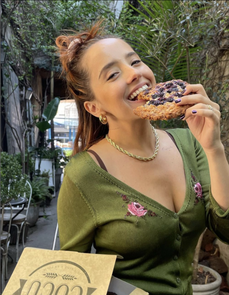 “Me pinté el pelo del color de mis ojos en Buenos Aires”, fue la descripción que utilizó la intérprete de Refugio junto a una serie de fotografías y videos en los que se pueden ver a la estrenada mamá con unas mechas de color rojizo mientras muerde una enorme galleta y deja al descubierto parte de su pecho debido al escote de su suéter verde con flores bordadas.