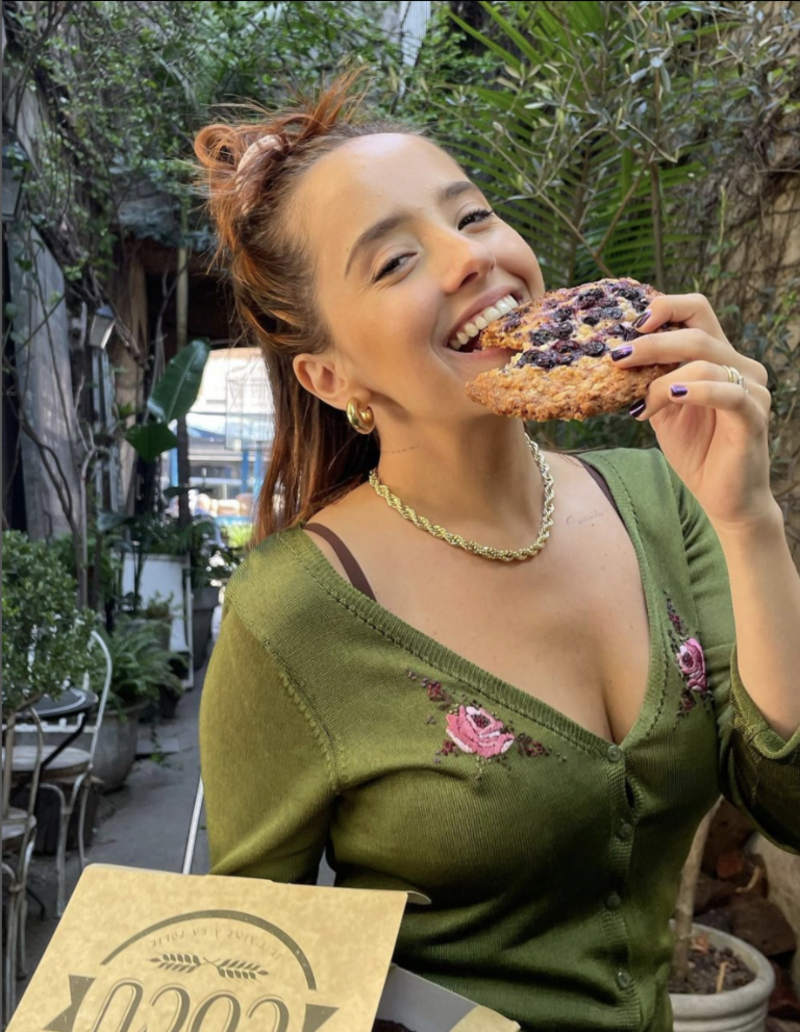 “Me pinté el pelo del color de mis ojos en Buenos Aires”, fue la descripción que utilizó la intérprete de Refugio junto a una serie de fotografías y videos en los que se pueden ver a la estrenada mamá con unas mechas de color rojizo mientras muerde una enorme galleta y deja al descubierto parte de su pecho debido al escote de su suéter verde con flores bordadas.