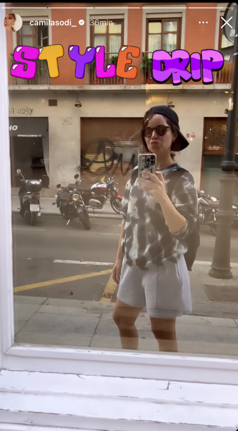 Mediante sus historias de Instagram la protagonista de Rubí compartió un video en el que se observa caminando por las calles de Madrid, donde actualmente vive, y de pronto se encuentra con un lugar que tiene un espejo y se enfoca para mostrarse.