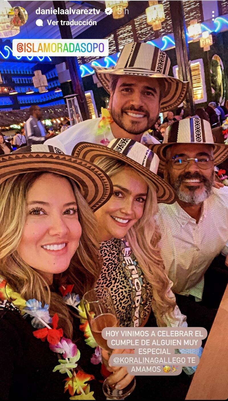 La empresaria salió de fiesta con un par de amigos y Daniel Arenas (43), todos posaron para la foto que tomó Daniella y llamó la atención que fue una selfie simple en la que solo dejó ver las caras de las personas que la acompañaban, contrario a lo que constantemente sube fotos a redes ya que procura que sean de cuerpo completo, algo que no hizo en esta ocasión, además tapó justamente su vientre con un texto: "Hoy vinimos a celebrar el cumple de alguien muy especial @Koralinagallegos te amamos", escribió.