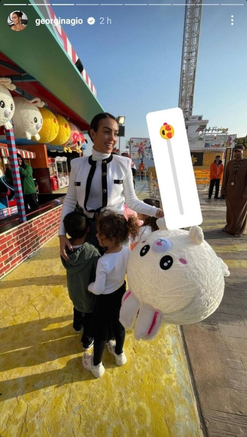 Hasta el momento el deportista no ha hecho su debut en su nuevo equipo Al-Nassr, por lo que está aprovechando de disfrutar de las atracciones de la capital del país petrolero junto a su esposa e hijos. A través de sus redes sociales, Georgina Rodríguez mostró parte de lo que fue su día familiar.