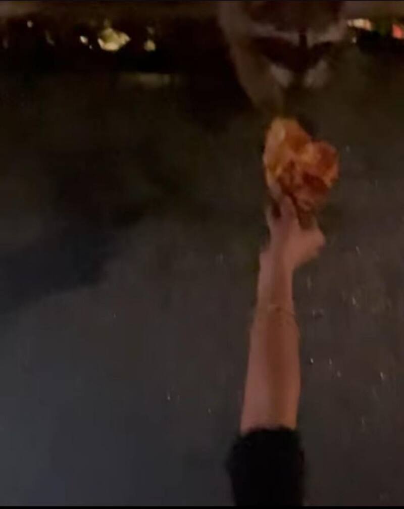La actriz le dio pizza al animal