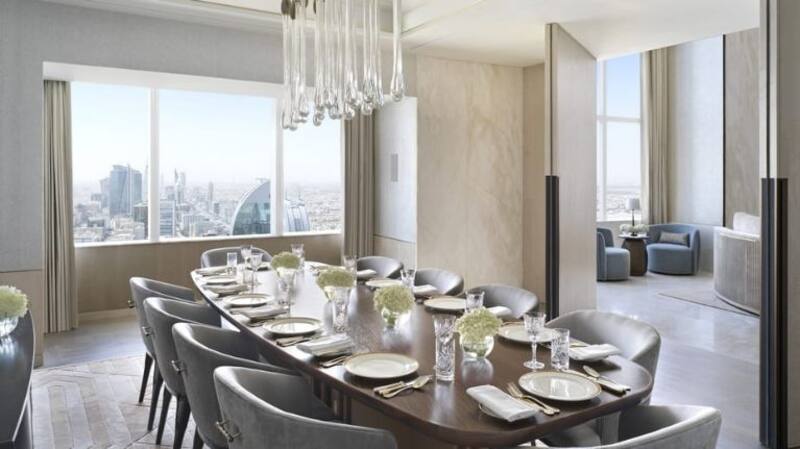 El lugar en el que se hospeda la pareja abarca los pisos 48 y 50 del rascacielos de 99 pisos, y, según la página web del hotel, tiene unas “vistas incomparables de Riad”, además de poseer una “sala de estar altísima, una oficina privada, un comedor y una sala multimedia”. El valor por noche de la lujosa suite no aparece publicado, pero la Suite Presidencial, más pequeña que la que utiliza CR7 y su pareja, tiene un valor de 4.000 dólares por noche.