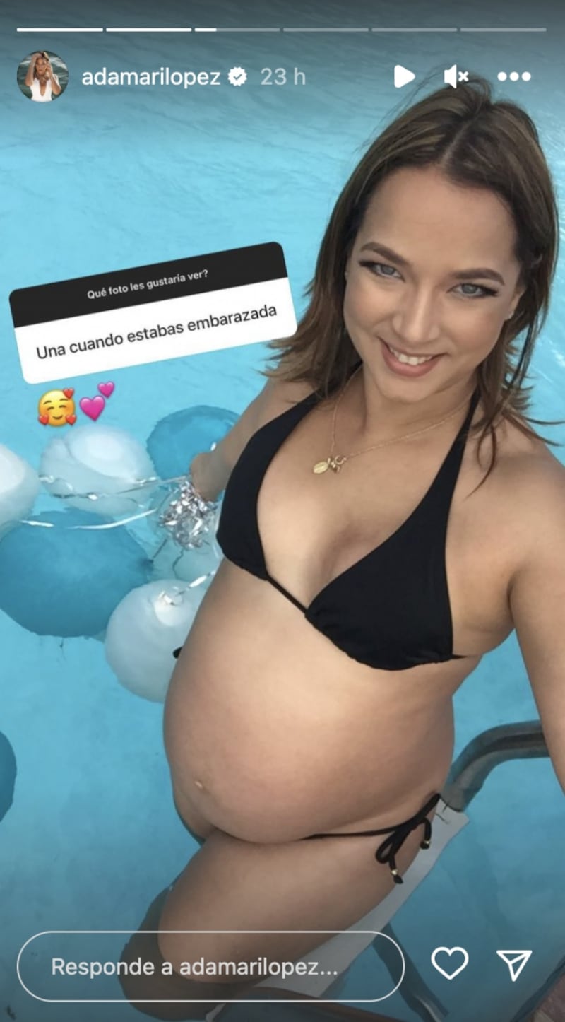 Fue en sus redes sociales que la presentadora hizo una dinámica en sus stories para que sus seguidores le pidieran foto de algo o alguien en específico y pese a que varios se enfocaron en algunas cosas materiales como sus looks y zapatos, hubo quien le sacó una sonrisa pidiéndole una foto de cuando estaba esperando a su única hija.
