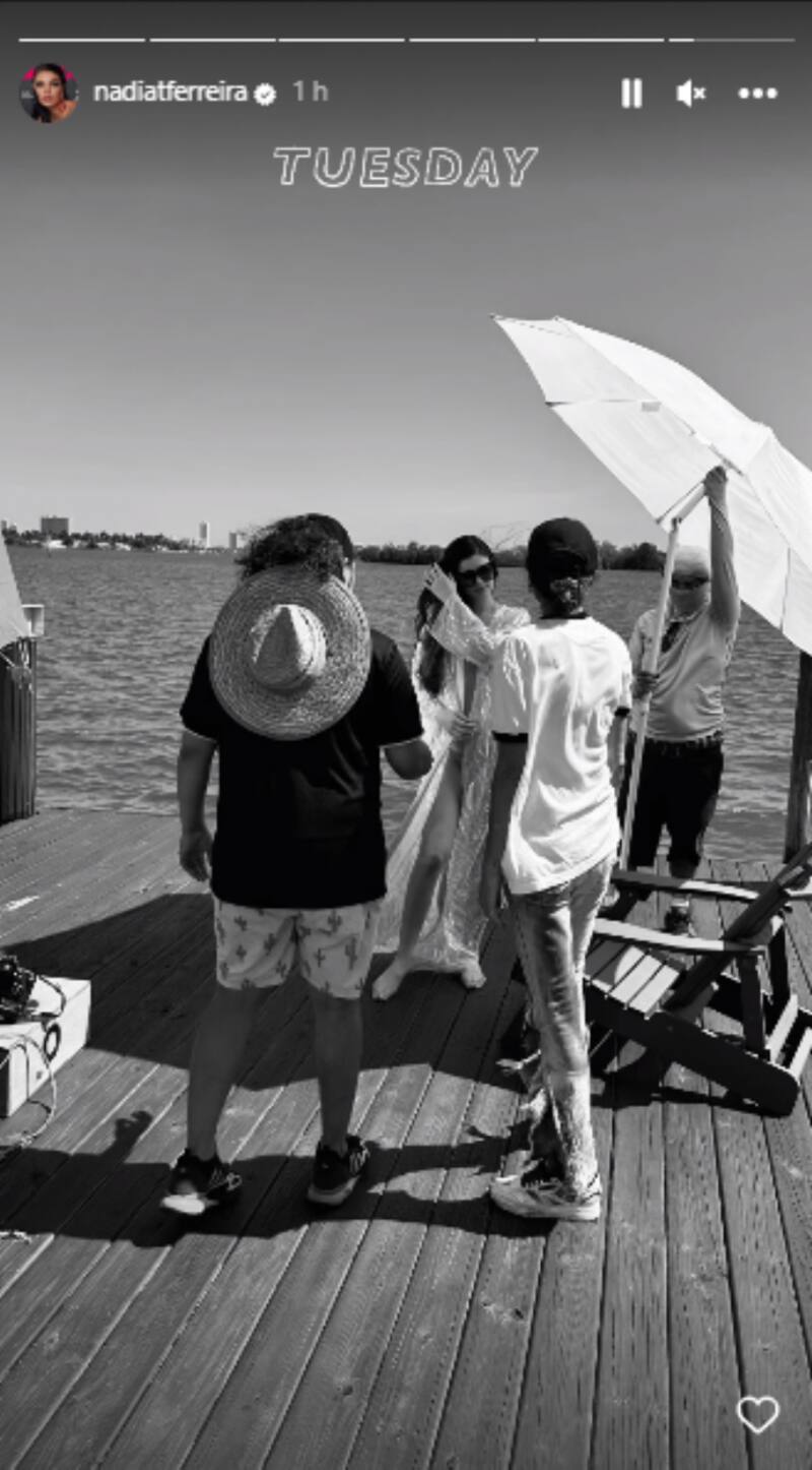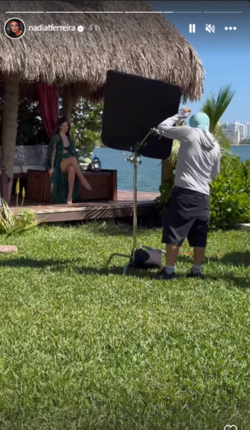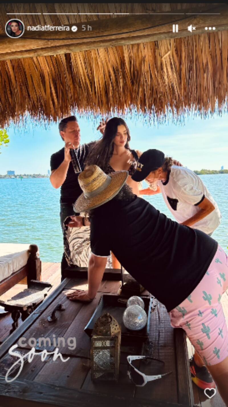 En una de las fotos, el equipo de Nadia se encuentra preparándola para la sesión, pero contrario a lo que solía mostrar la modelo, en esta ocasión uno de los maquilladores aparece tapando con su cuerpo el vientre de Ferreira. En otra de las imágenes, es la vestimenta de la paraguaya la que oculta el embarazo.