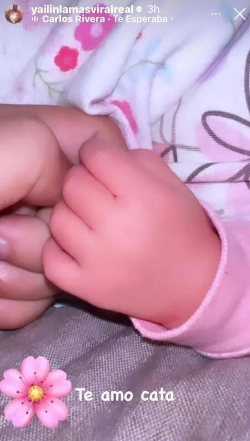 Por medio de su cuenta oficial de Instagram, Yailin posteó una imagen de su mano sosteniendo la manito de su hija, sin mostrar el rostro de Cattleya. “Te amo, Cata”, fueron las palabras que utilizó la cantante para acompañar la tierna fotografía.