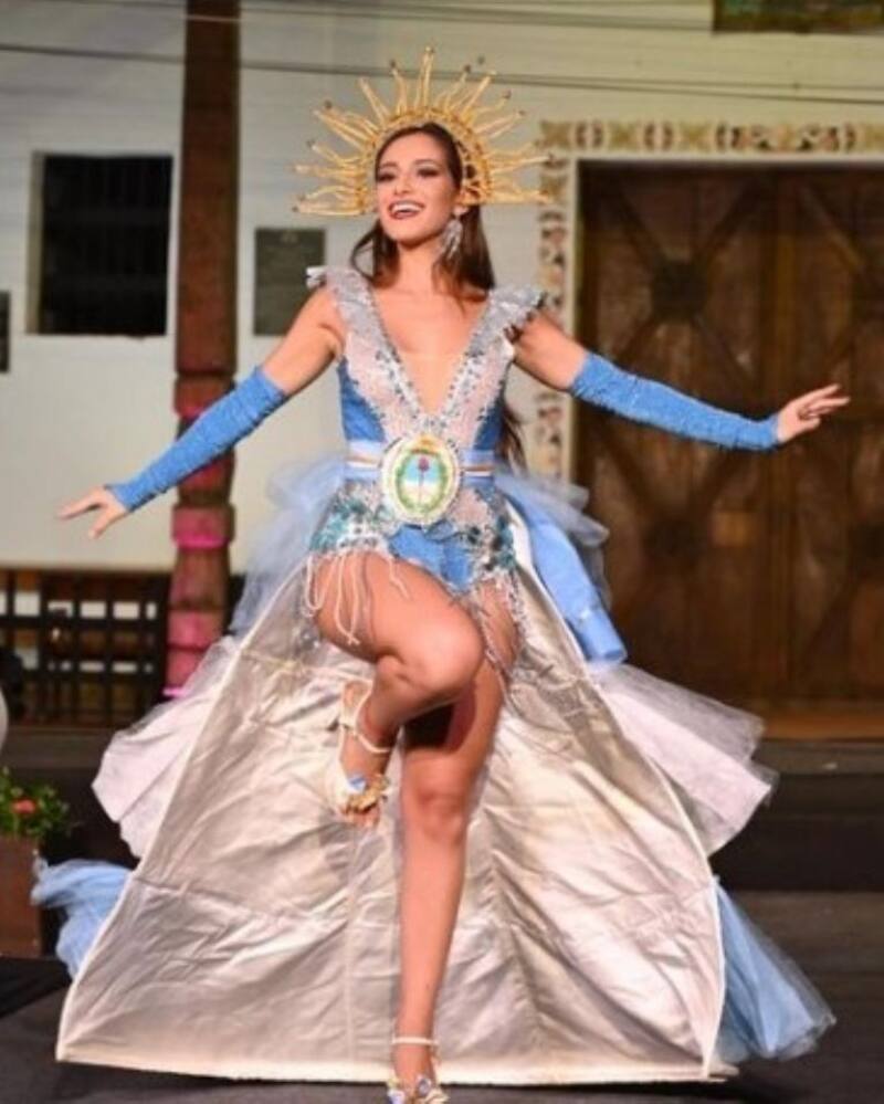 La candidata local, la boliviana María Jesús Jiménez, fue una de las más aplaudidas con un traje de tintes nacionalistas. "Mi traje típico fue inspirado en mi región del Chaco Boliviano, haciendo homenaje a todos los símbolos patrios y alzando mi voz para hacer respetar nuestra reserva nacional del Tariquia", señaló la reina que deberá sacar la cara por el país anfitrión.