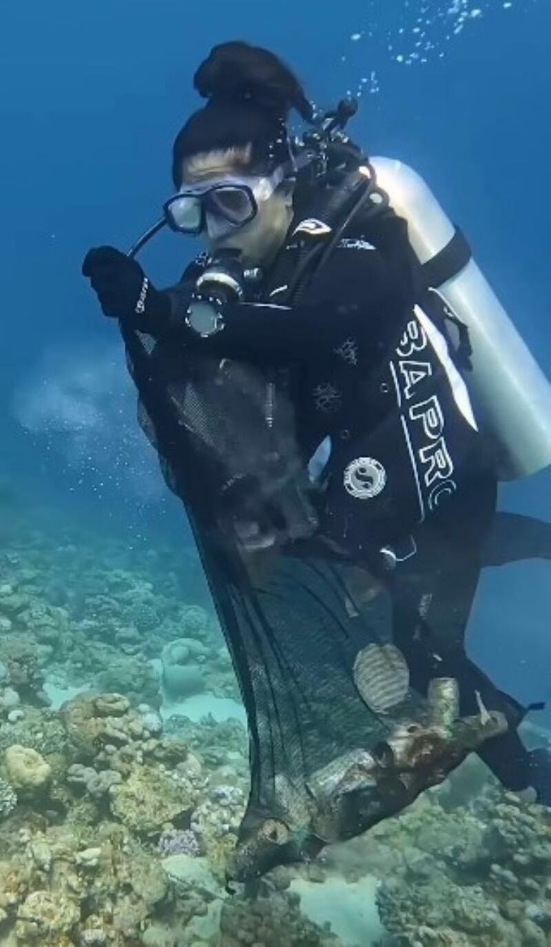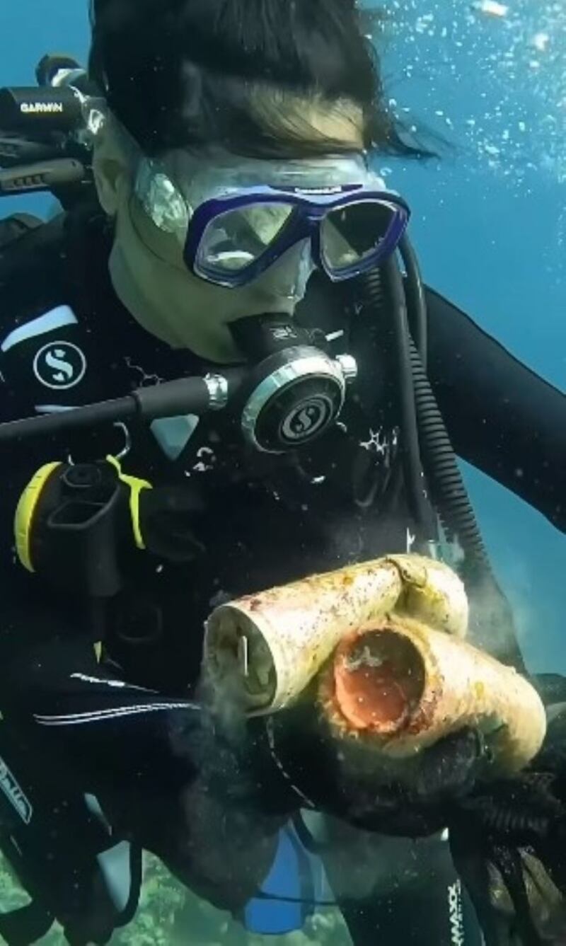 “Bajo el agua todos compartimos la basura. Compartamos todos la responsabilidad de un futuro con océanos limpios y la supervivencia de nuestro hermoso y vital coral. #salvatuocéano”, escribió la mexicana, quien lucía un traje e indumentaria de buzo, en la descripción del post y en el que se le ve recogiendo la basura que se encontró bajo el mar.