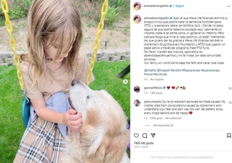 “Ayer leí que Wave Life Sciences terminó su ensayo clínico que podría tratar la demencia frontotemporal (FTD) y la esclerosis lateral amiotrófica (ALS). Donde no estoy seguro de que podría habernos ayudado aquí, realmente no importa, todavía se siente como un golpe en el intestino. Pero siempre tengo que mirar el lado positivo, lo están intentando”, escribió Emma en una publicación de su cuenta de Instagram.