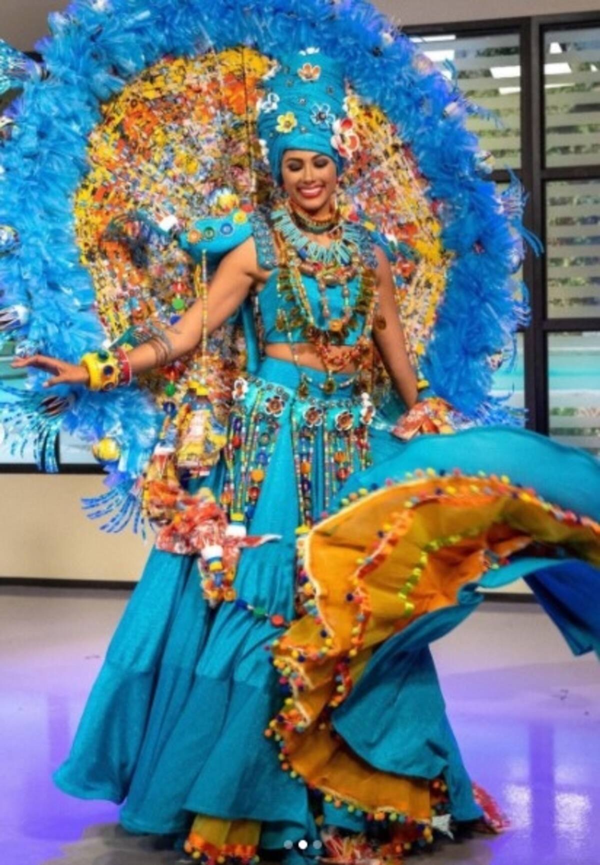 Su traje es un homenaje al afrodescendiente y también un llamado a la conservación de las playas y costas de Puerto Rico.