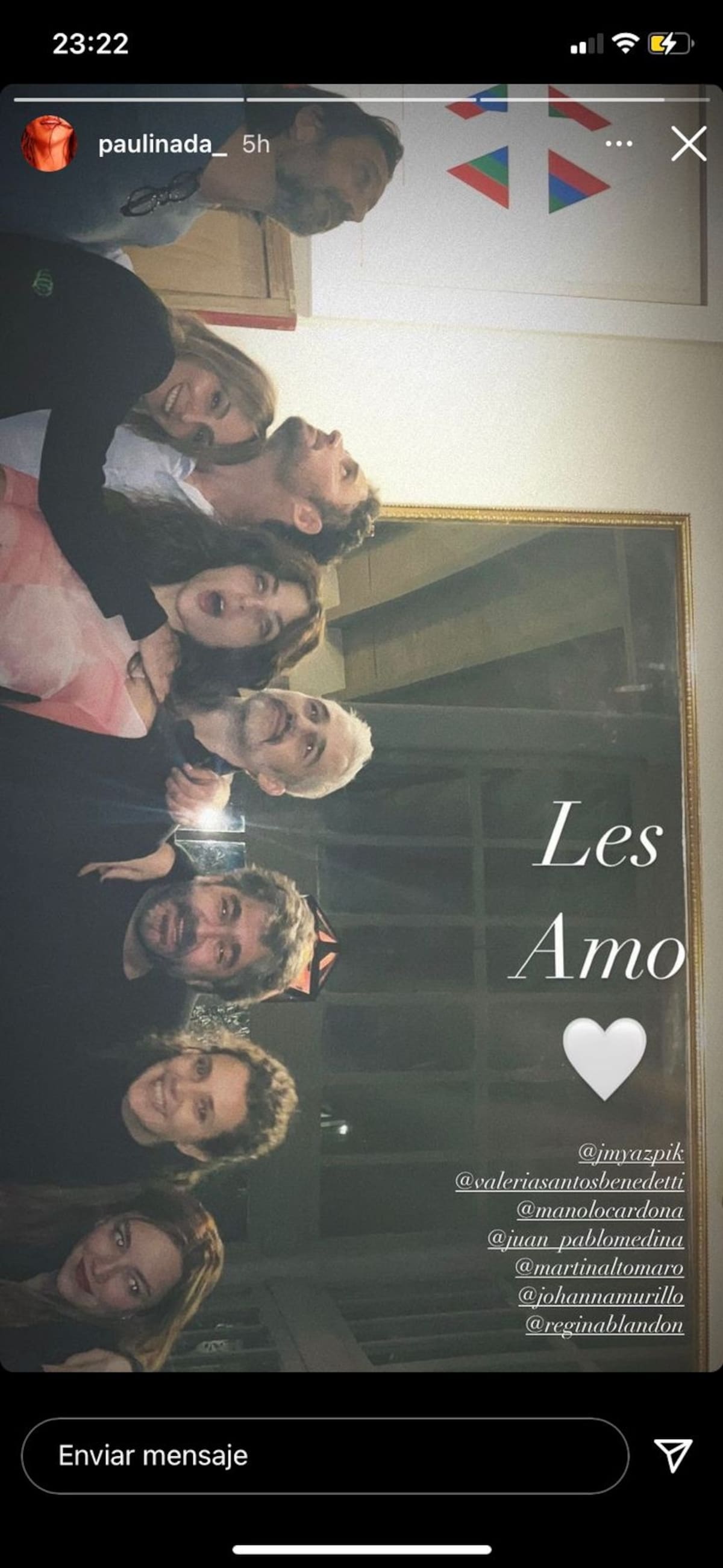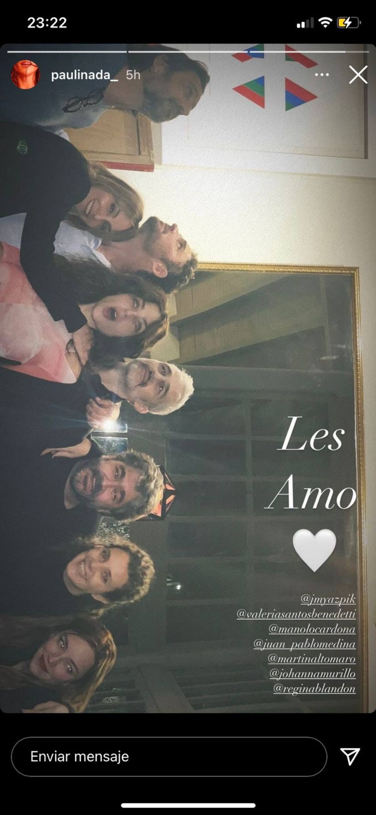 El actor de Soy tu fan posó con sus amigos José María Yazpik, Johanna Murillo, Martín Altomaro, Regina Blandón, Manolo Cardona y su esposa Valeria Santos y en ella destacó la alegría con la que se ve le a Medina.