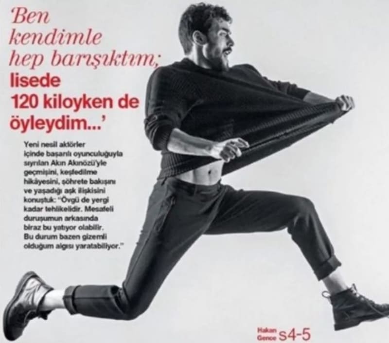 En la portada, que ya se ha viralizado en las distintas redes, se ve a Akin saltando con un sugerente traje sport, con el que muestra una parte de su abdomen. La particularidad recuerda la época de estudiante, cuando llegó a pesar 120 kilos.