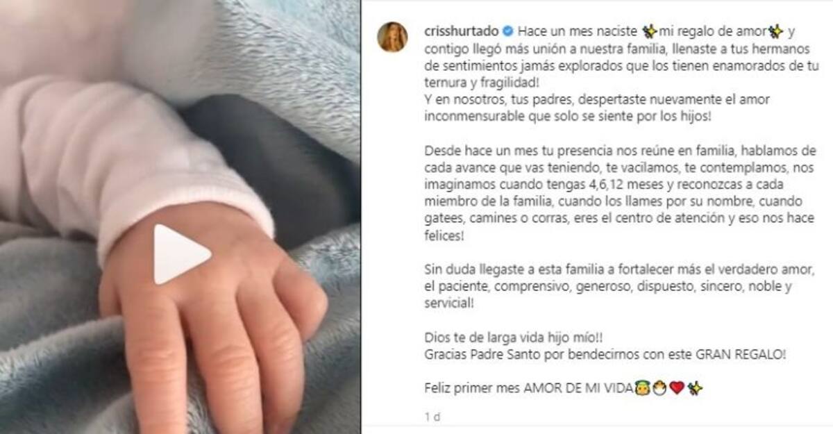 La ex presentadora de Guerreros publicó un tierno video con un emocionante mensaje en su cuenta de Instagram, donde dice que "hace un mes naciste mi regalo de amor y contigo llegó más unión a nuestra familia, llenaste a tus hermanos de sentimientos jamás explorados que los tienen enamorados de tu ternura y fragilidad. Y en nosotros, tus padres, despertaste nuevamente el amor inconmensurable que solo se siente por los hijos".