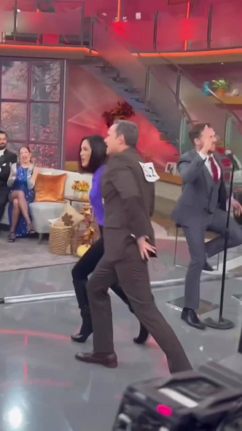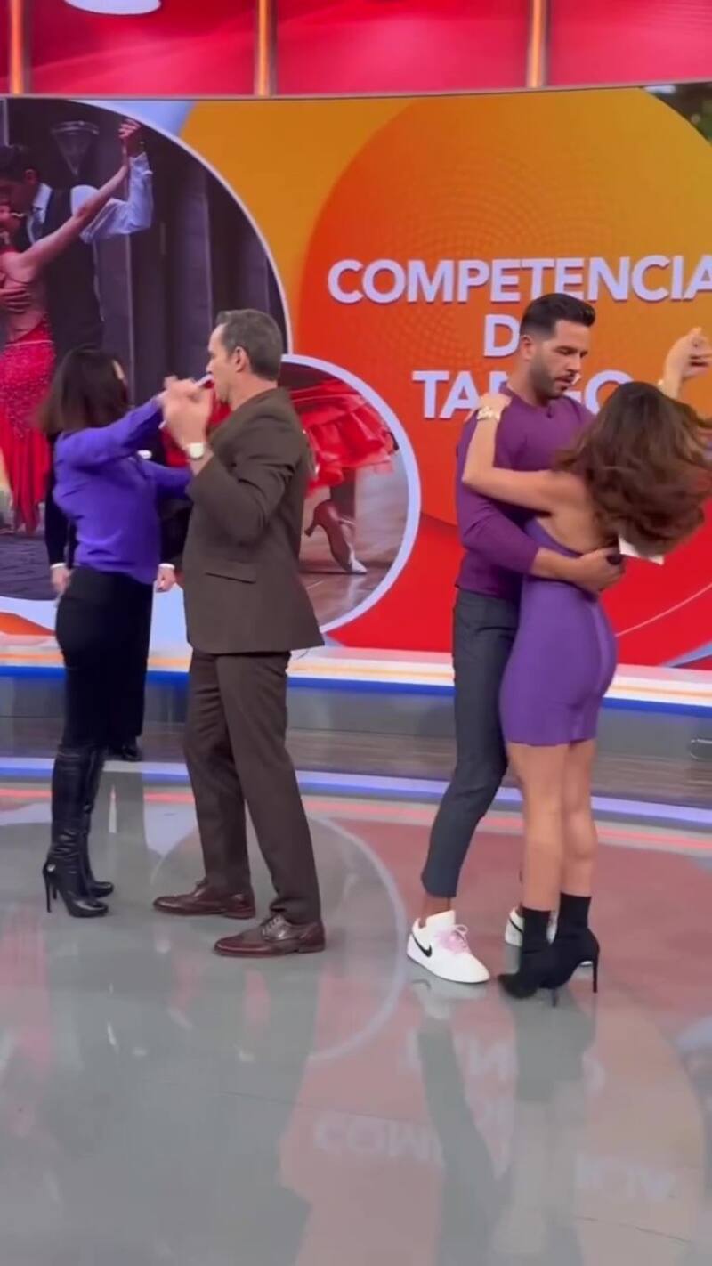 Sintiéndose los reyes de la pista, Alan Tacher y Karla Martínez saltaron al centro del foro para enfrentarse a uno de los géneros más difíciles, el tango y por presumir que sabían moverse como grandes profesionales, casi terminan en el suelo cuando el conductor intentó un paso de giro y la cabeza de ella estaba tocando el piso.