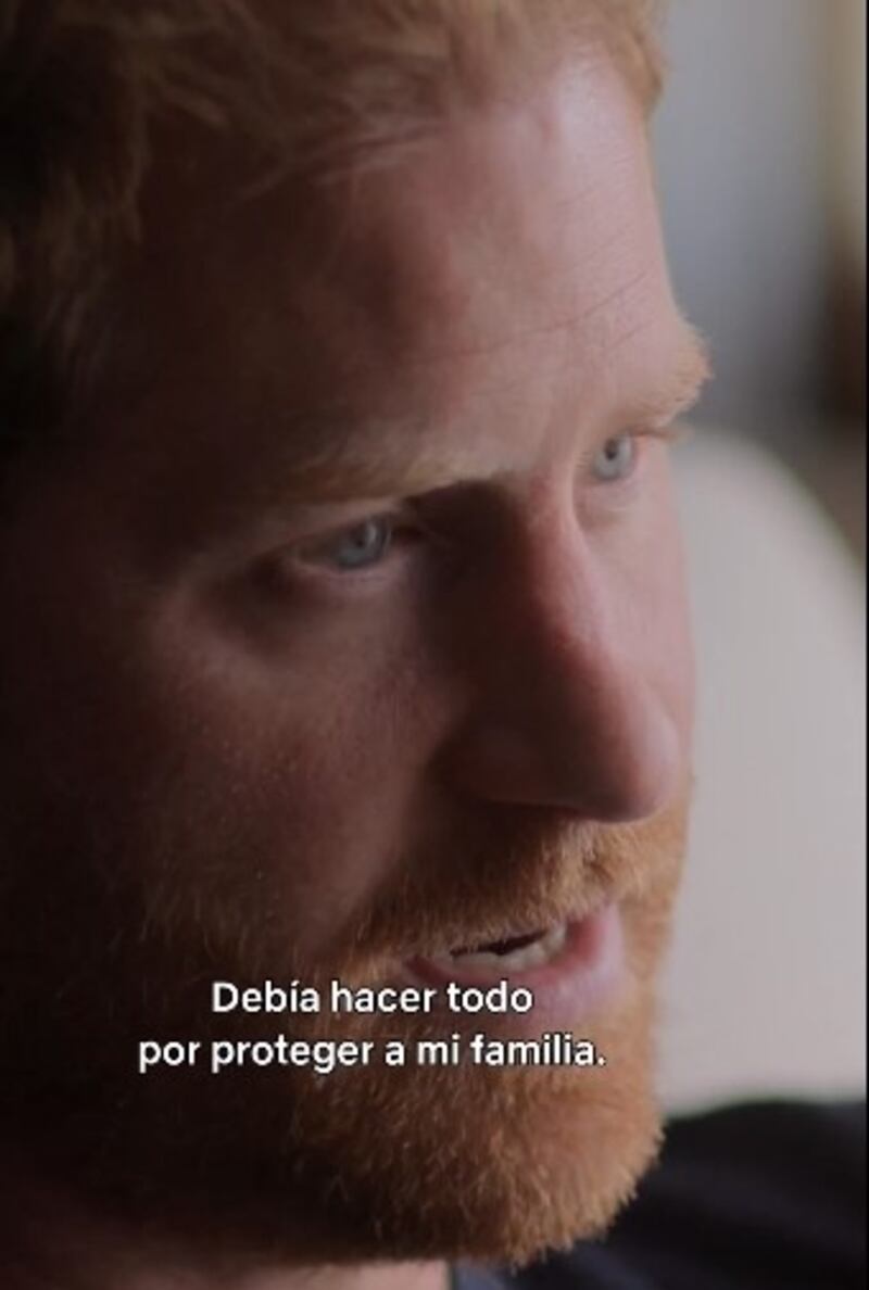 "Debía hacer todo para proteger a mi familia", aparece diciendo Harry, esta vez en video. Luego, otra cadena de imágenes muestra los rostros de la pareja desde que eran apenas unos niños antes de detenerse en una imagen de la madre de Archie y Lilibet secándose las lágrimas. "Cuando hay tanto en juego, ¿no tiene más sentido oír de nosotros nuestra historia?", pregunta Meghan en el final del adelanto.