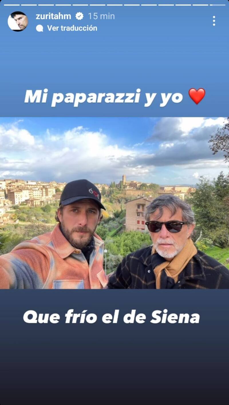 “Mi paparazzi y yo”, comentó Zurita en otra publicación en la que compartió una imagen en la que posa junto a Sebastián y las calles de Siena detrás de ellos. “Qué frío de Siena”, agregó con Beautiful Boy de John Lennon como música de fondo en este retrato.