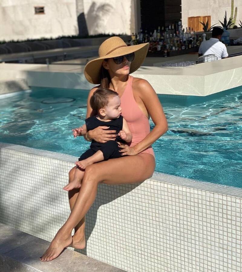 Santiago Enrique Bastón nació el 18 de junio en 2016 en Los Ángeles, desde entonces la actriz ha compartido en redes sociales las actividades que realiza con su hijo y los momentos especiales que pasa con él como los días de vacaciones, Halloween, Navidad y sus instantes de juego que pueden ser al aire libre o en casa.