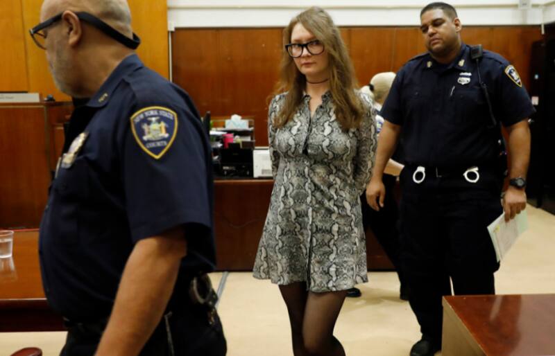 En 2017, la Oficina del Fiscal del Distrito de Manhattan que estaba llevando a cabo una investigación por fraude bancario, hurto mayor y robo de servicios, arrestó a Anna el 3 de octubre en California. Dos años más tarde, la joven fue sentenciada a entre 4 y 12 años en la prisión estatal Rikers Island, y se le ordenó pagar una multa de 24 mil dólares y una restitución de casi 200 mil a los damnificados.