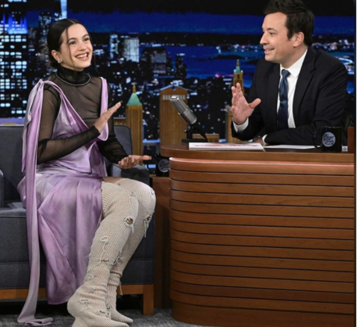 Rosalía ha alcanzado fama internacional y se codea con los más famosos de Hollywood, así lo dio a conocer durante una entrevista en el programa de Jimmy Fallon en el que han estado estrellas de la talla de Kim Kardashian, Dua Lipa y Robert Pattinson, en la que habló de una divertida anécdota con Harry Styles, sin embargo no todo fue risas, pues fue severamente criticada por su atuendo.