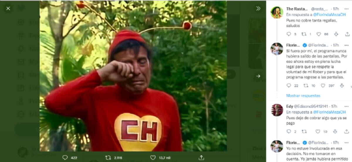 Desde entonces, el anuncio provocó la reacción de Florinda Meza, viuda del protagonista de los personajes, quien recalcó que no fue la mejor decisión por parte de los herederos y administradores del legado del artista, que no llegaron a un acuerdo económico con Televisa para seguir llevando los programas a todo el mundo.
