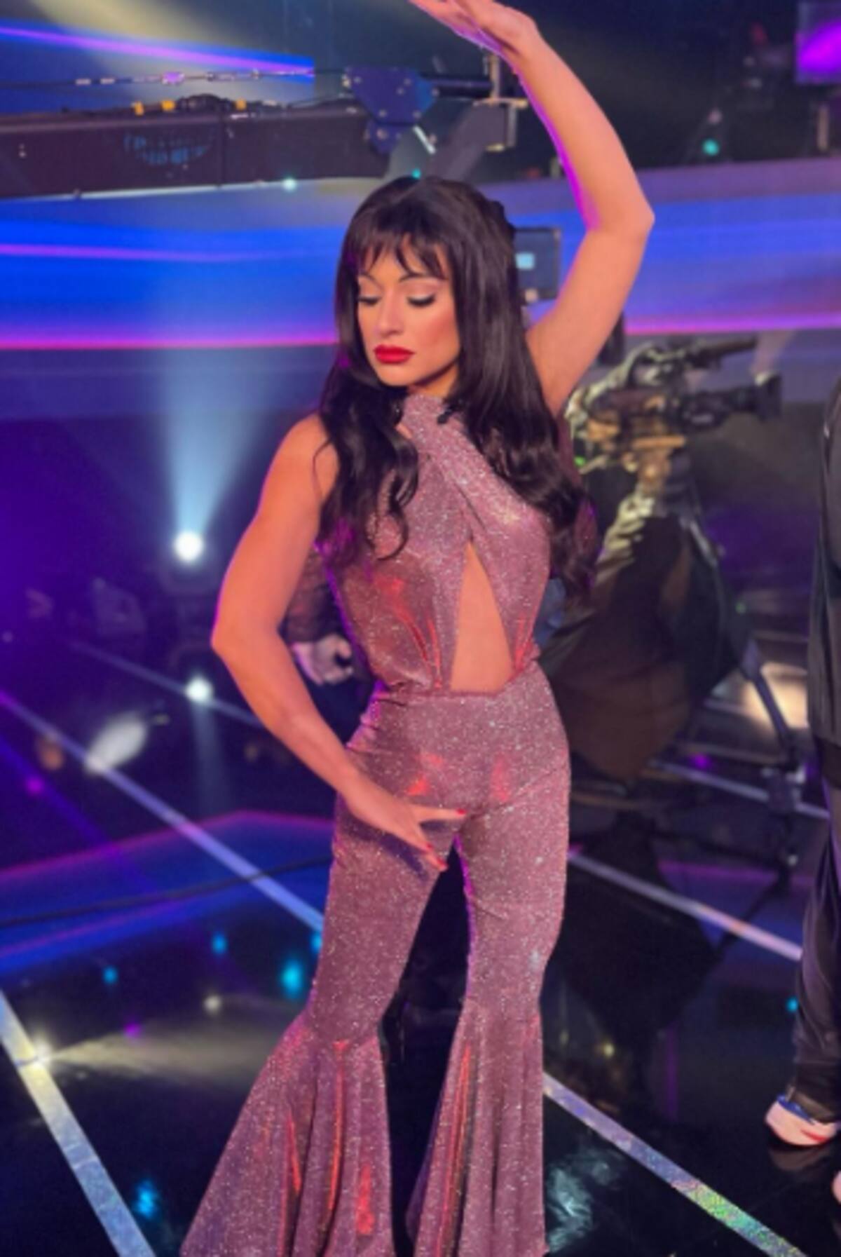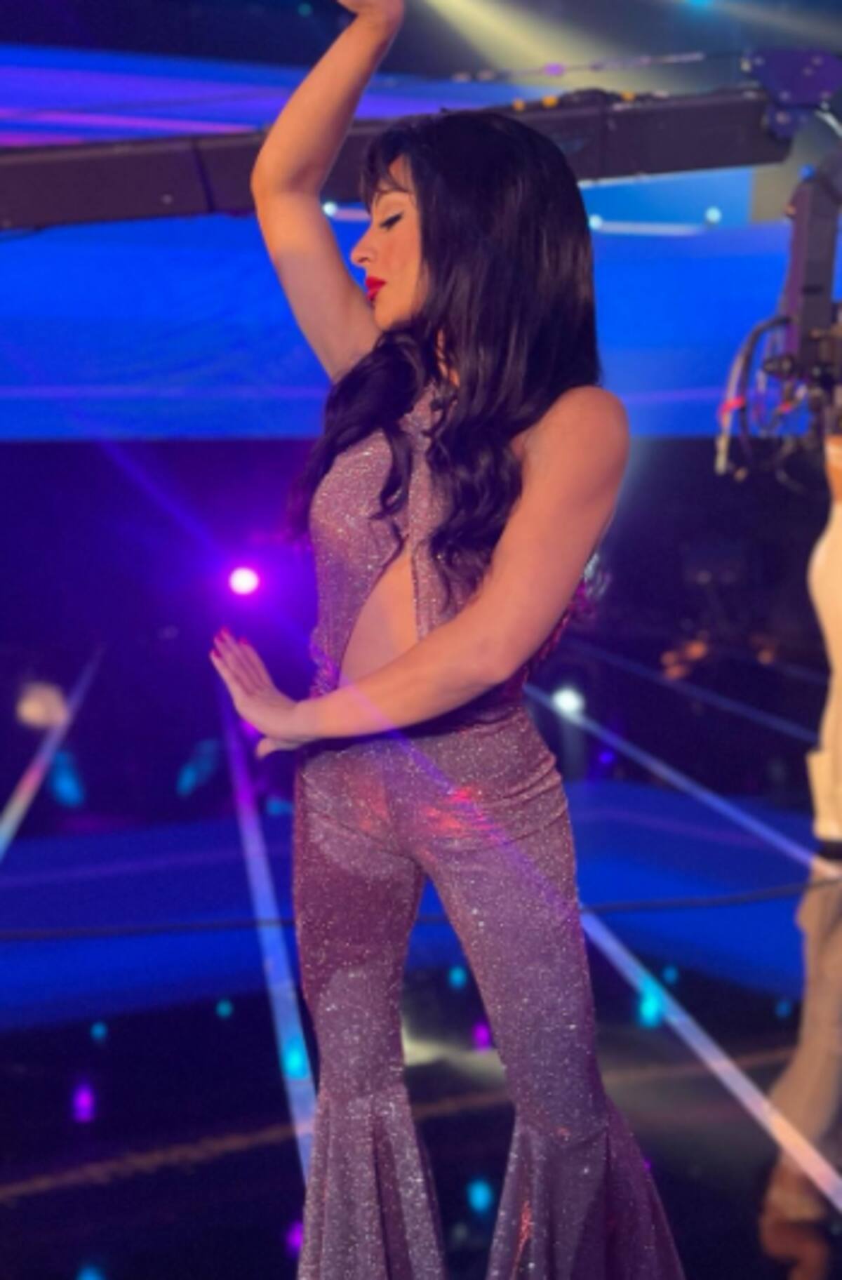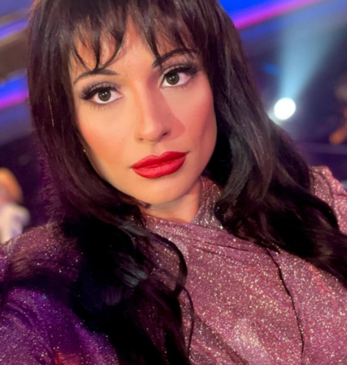 A través de sus redes sociales mostró la transformación que tuvo al vestirse como la fallecida Selena Quintanilla, ya que posó con el característico traje morado y brillante que identifica a la intérprete de Como la flor El vestuario no sólo lo usó para identificarse con la "Reina del tex-mex", sino también para realizar un video promocional del nuevo proyecto.