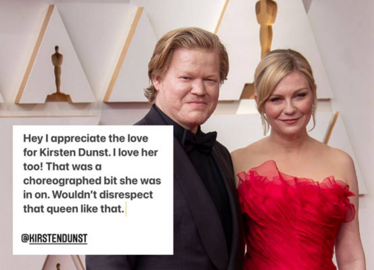 Plemons, que parecía un poco confundido, le preguntó a Schumer: “¿Sabías que era mi esposa?”. Y Schumer respondió: “¿Estás casado con ese relleno de asiento?”. Por está situación, los usuarios en las redes sociales criticaron a la comediante argumentando que había sido una falta de respeto para Dunst. Dicha broma, se produjo justo después del altercado de Will Smith con Chris Rock.