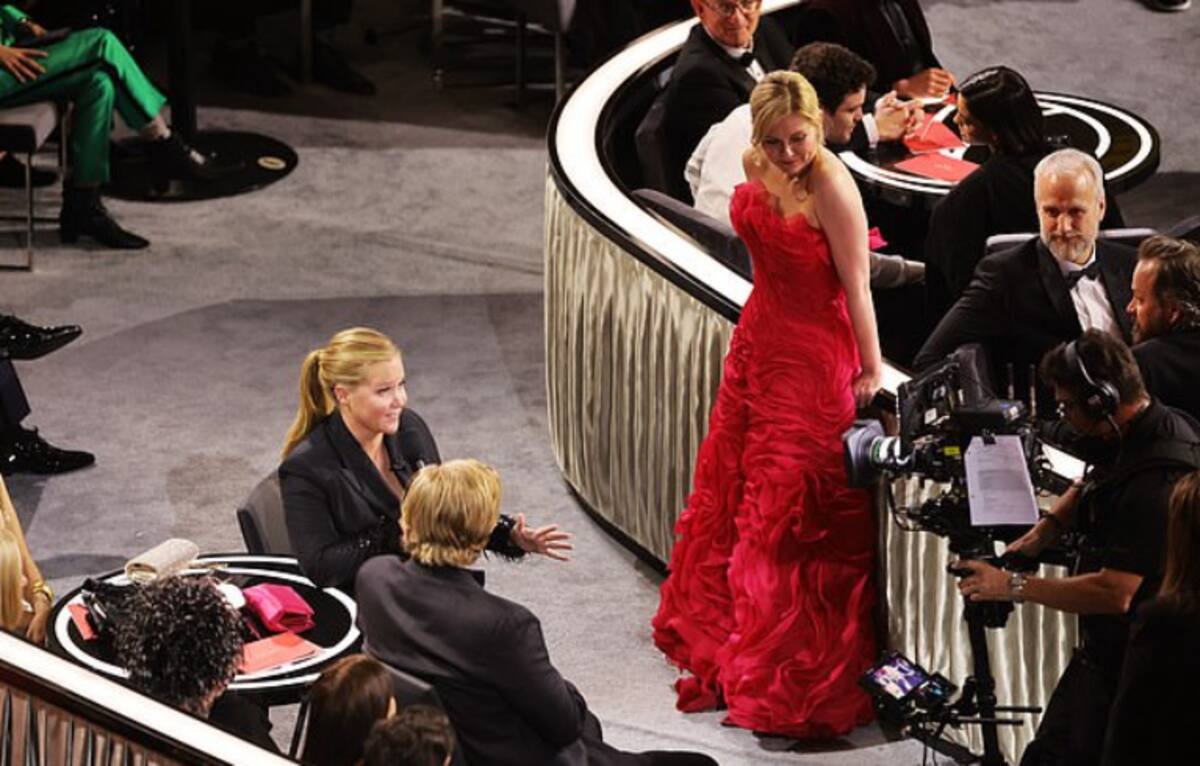 Schumer le preguntó a Dunst, mientras caminaba hacia la mesa de ella y su esposo Jesse Plemons: “Aquí hay un asiento para llenar ¿Podemos levantarte, cariño? ¿quieres ir al baño?”. Seguidamente, Amy levantó a Kirsten por el brazo y le robó su asiento para conversar con Jesse.
