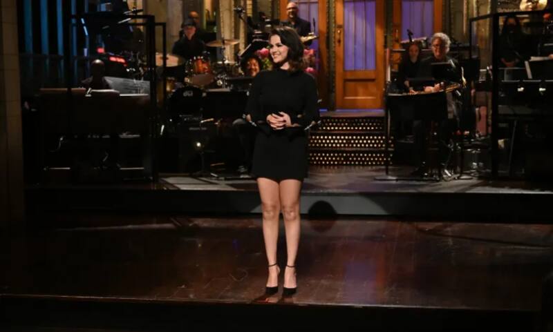 Asimismo, Gomez rememoró como las actrices Emma Stone y Scarlett Johansson encontraron sus parejas al ser invitadas al programa, tal situación se repitió con Machine Gun Kelly y luego con Pete Davidson. La audiencia que estaba presente en el recinto aplaudió el chiste de Selena al hacer un paréntesis en cómo inició el romance de Kim Kardashian y la estrella de SNL.